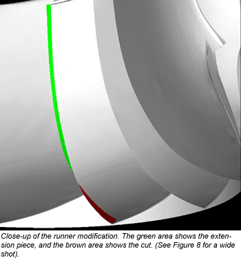 Several blade cuts and extensions were tried to modify the critical parameters. Once the draft tube flow was optimized, they examined the flow in the runner to reduce, if possible, runner losses at the same time. The researchers arrived at a solution that reduced hydraulic losses in the runner as well as the draft tube at the maximum efficiency point.