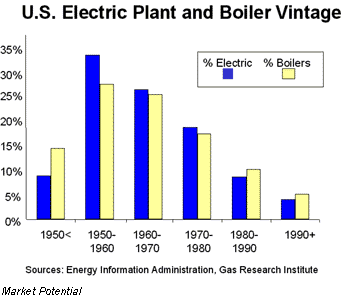 From USCHPA's Combined Heat and Power: A Vision for the Future of CHP in the U.S. in 2020, the following three charts provide a graphic picture of both the impetus for this challenge and the market's potential.